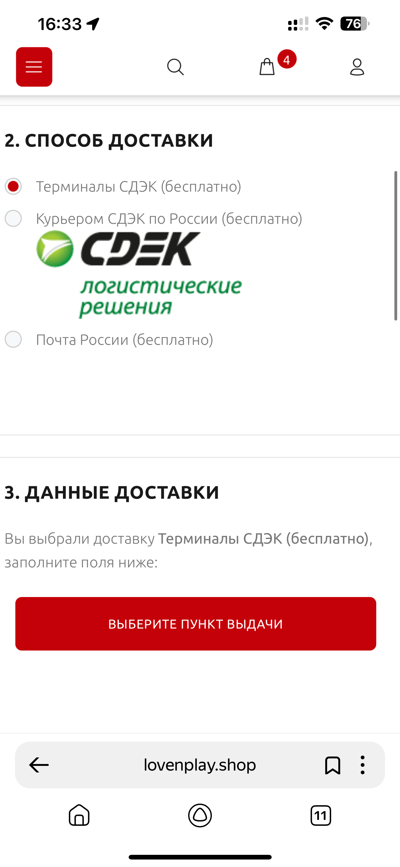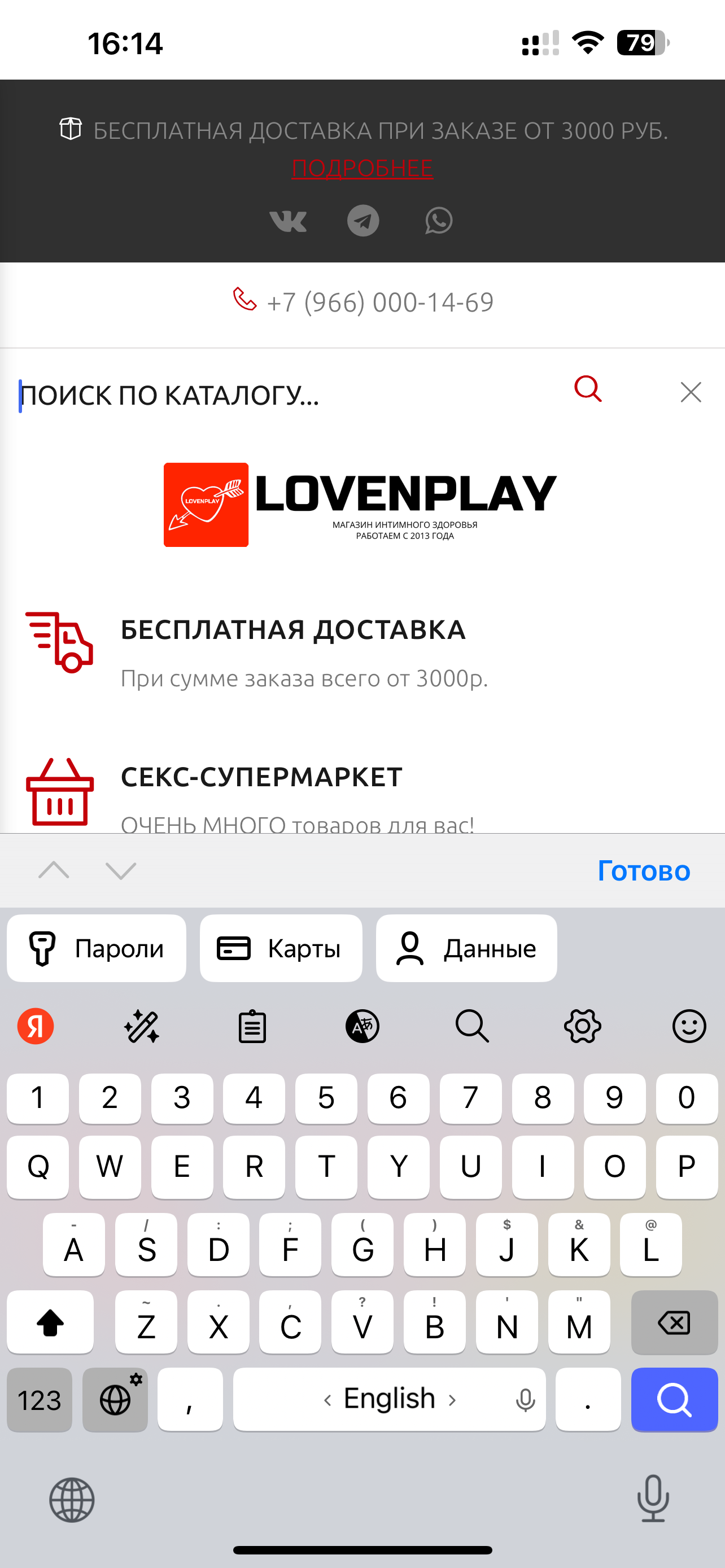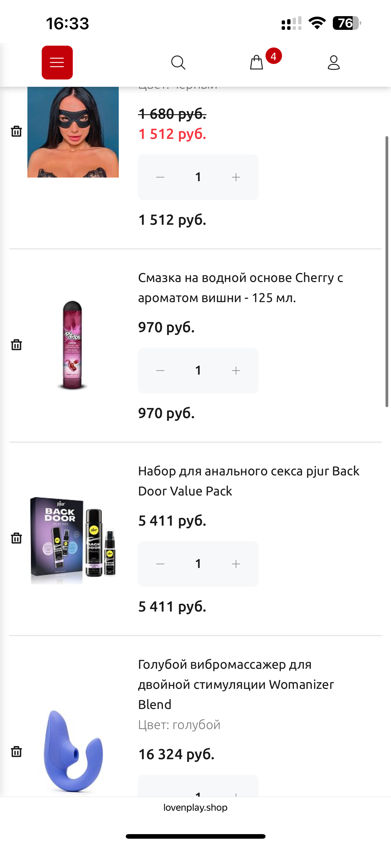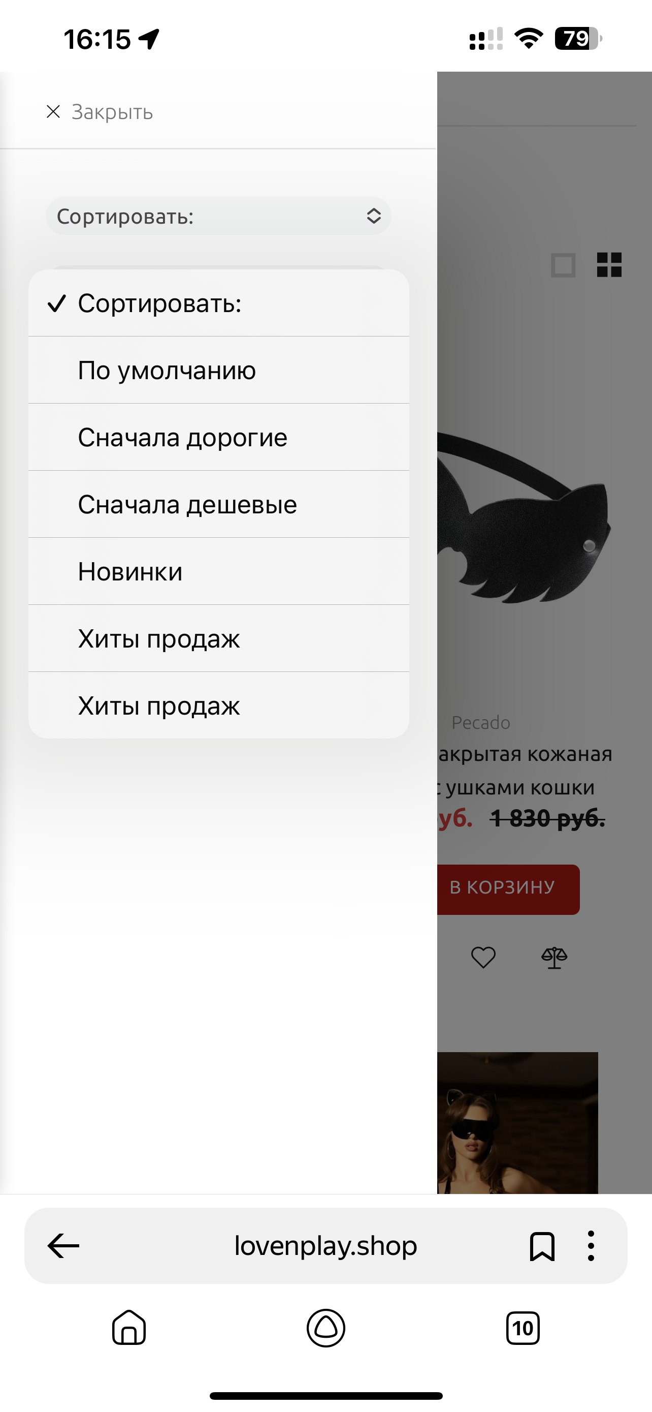 Выбор товара и оформление заказа на сайте LOVENPLAY.SHOP