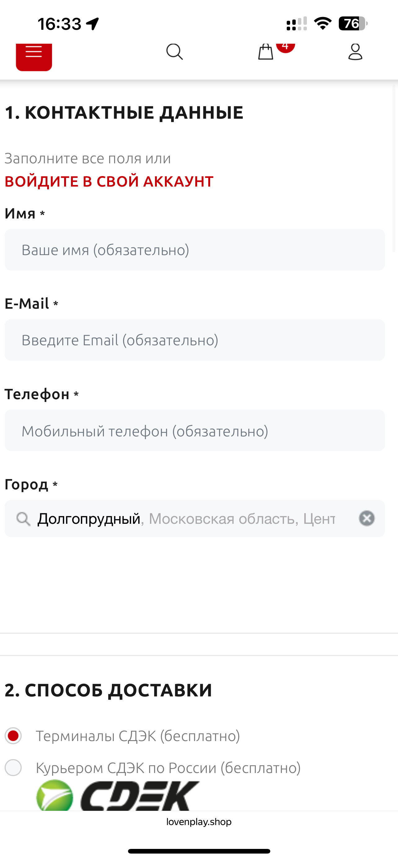 Введите свои данные, необходимые для оформления. Внимательно проверьте поле "Город".